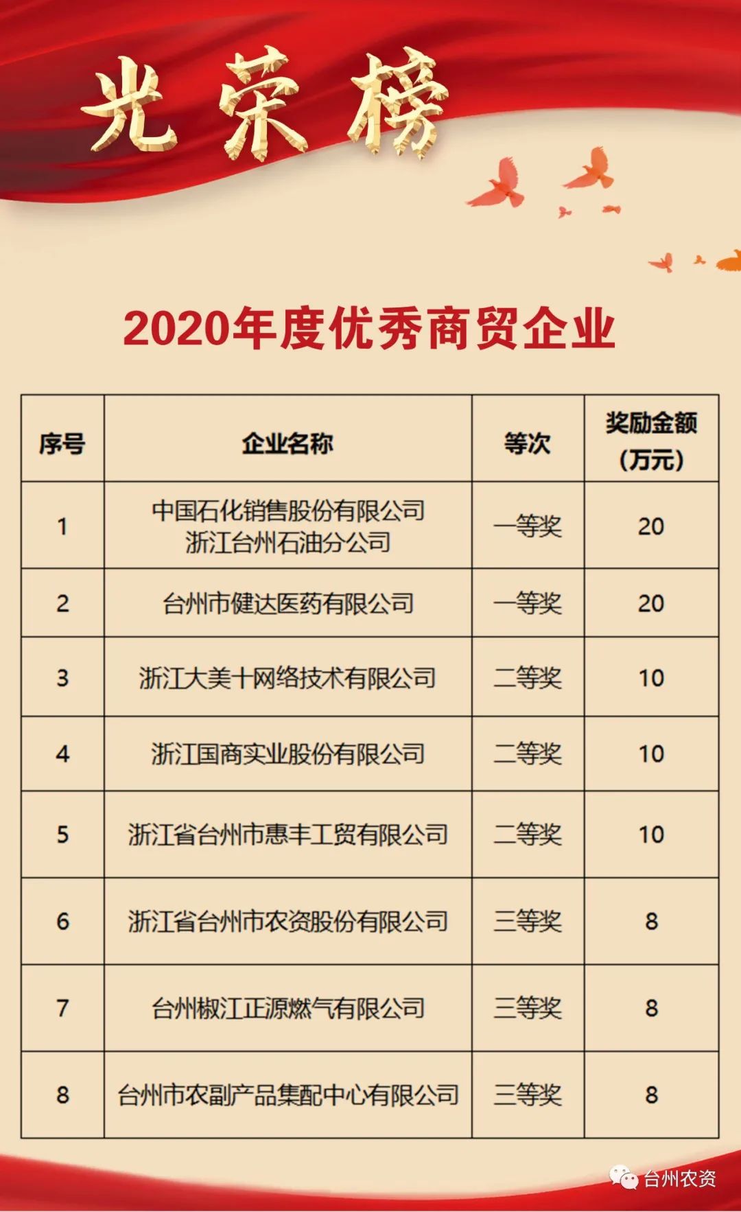 喜報|臺州農資榮獲椒江區(qū)2020年度優(yōu)秀商貿企業(yè)、農業(yè)生產綜合發(fā)展獎、新型農業(yè)經營主體培育獎